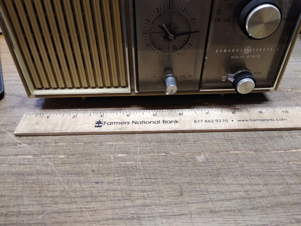 ***PLEASE LOOK AT ALL THE PICTURES AND ASK QUESTIONS BEFORE BIDDING*** This is a Vintage General Electric Solid State Table Top Am/Fm Clock Radio With Working Clock, Am is very strong and clear but Fm is not working, Parts Repair Lot. *** The pictures are a substantial part of the description so please examine all the photos and contact me if you have any questions. We will be happy to save you shipping costs by picking this up at our shop. Thank You 051325- RK-01