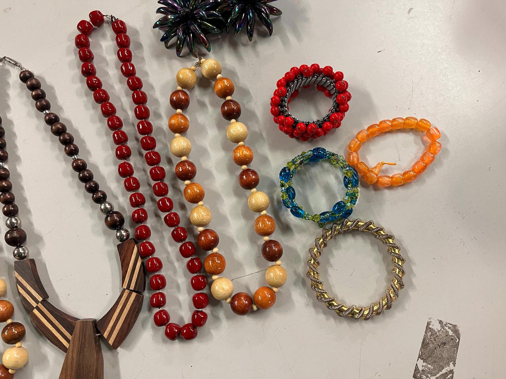 VTG Giant Lot of Mardi Gras Decorative Wooden Style Costume Jewelry Necklaces