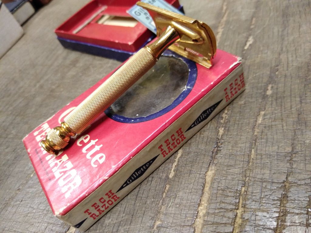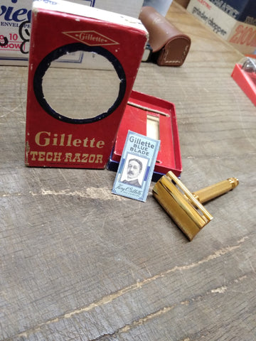 ***PLEASE LOOK AT ALL THE PICTURES AND ASK QUESTIONS BEFORE BIDDING*** This is a Vintage Gillette Gold Tech Double Edge Ball End Safety Razor w/Box Very Good Condition!! *** The pictures are a substantial part of the description so please examine all the photos and contact me if you have any questions. We will be happy to save you shipping costs by picking this up at our shop. Thank You 091025-02-RK