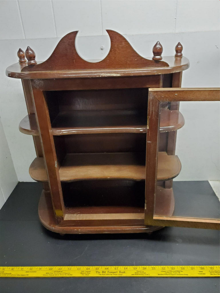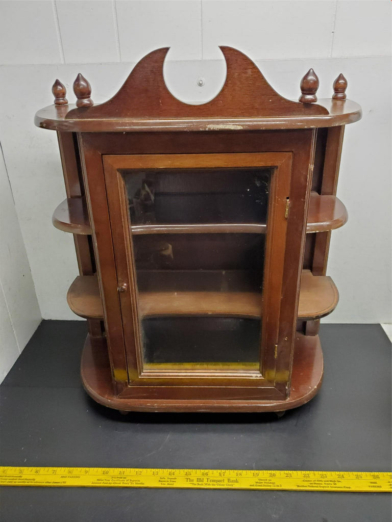 Vtg Glass Front Classy Wooden Table Curio Wall Hanging Curio Cabinet Decorative