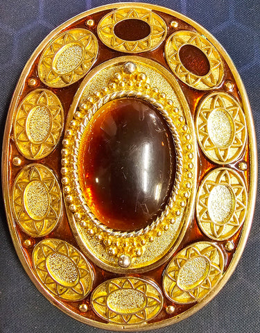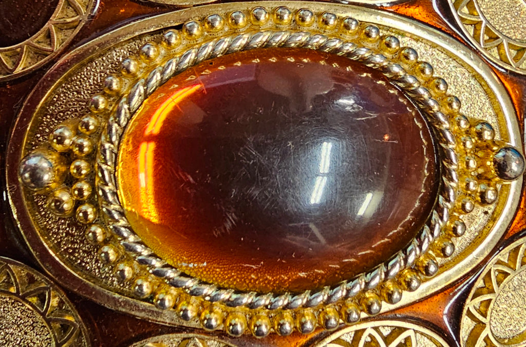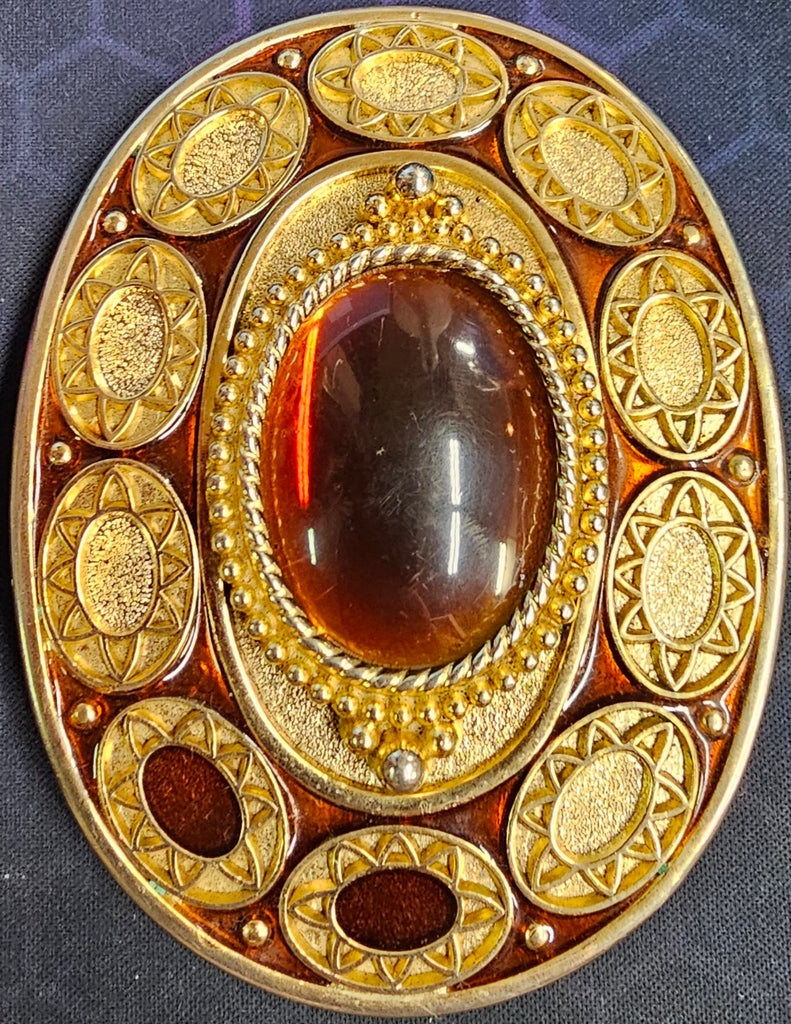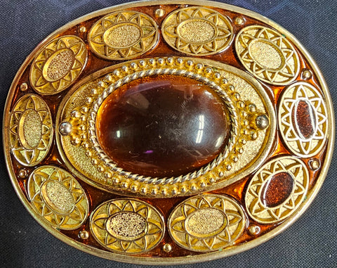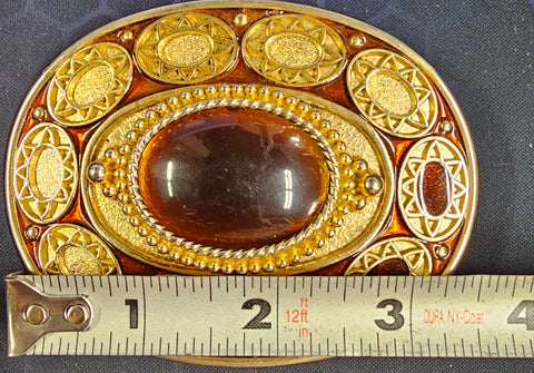VTG Gold Brass Cat Eyed Stone Center Oval Belt Buckle Western Cowgirl Cowboy