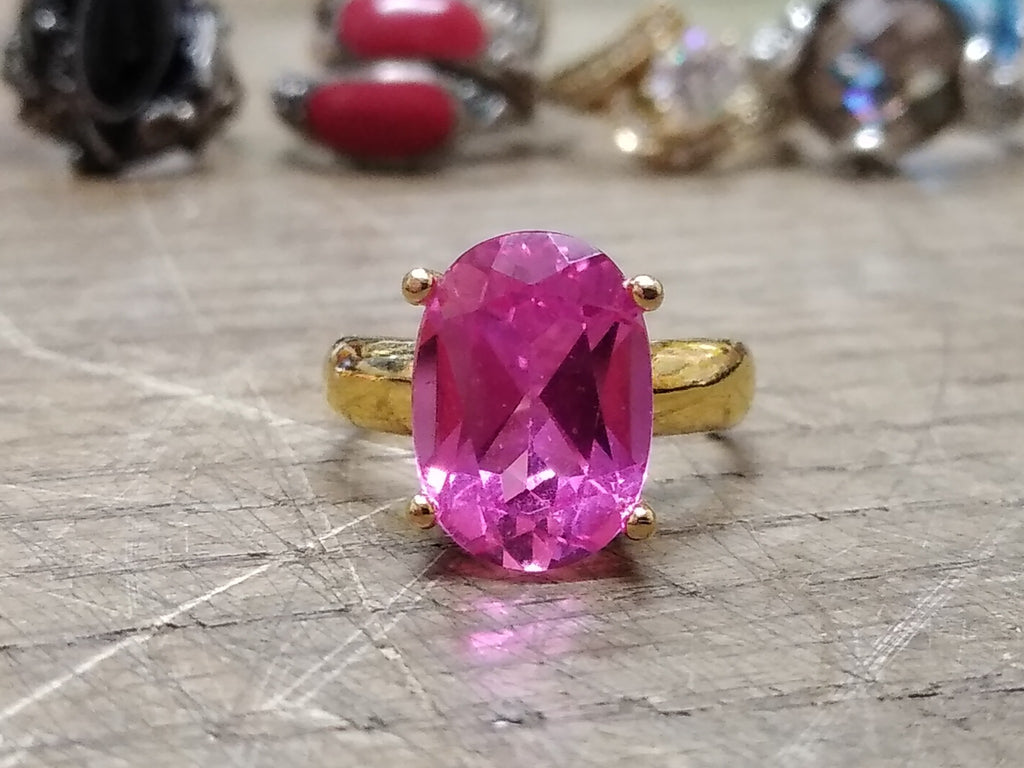 ***PLEASE LOOK AT ALL THE PICTURES AND ASK QUESTIONS BEFORE BIDDING*** This is a Vintage Gold Over 925 Sterling Silver Pink Sapphire? Size 8 Ring Tested Beautiful! *** The pictures are a substantial part of the description so please examine all the photos and contact me if you have any questions. We will be happy to save you shipping costs by picking this up at our shop. Thank You 093025-10-RK