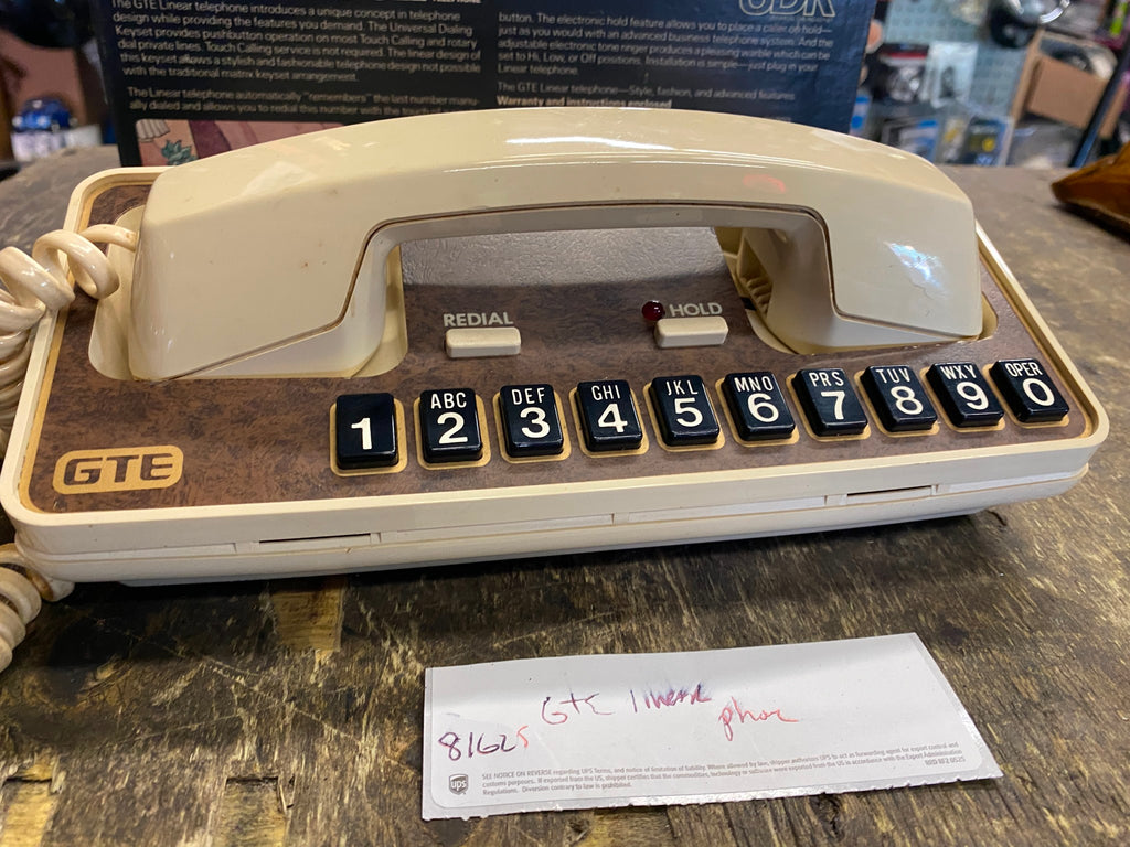 Vtg GTE Linear Desk Phone Telephone Touch Call Retro Push button Orig Box!   still has the original price tag on it... whats cool is were in the old troutman dept store  its now a motorcycle /antique store!
