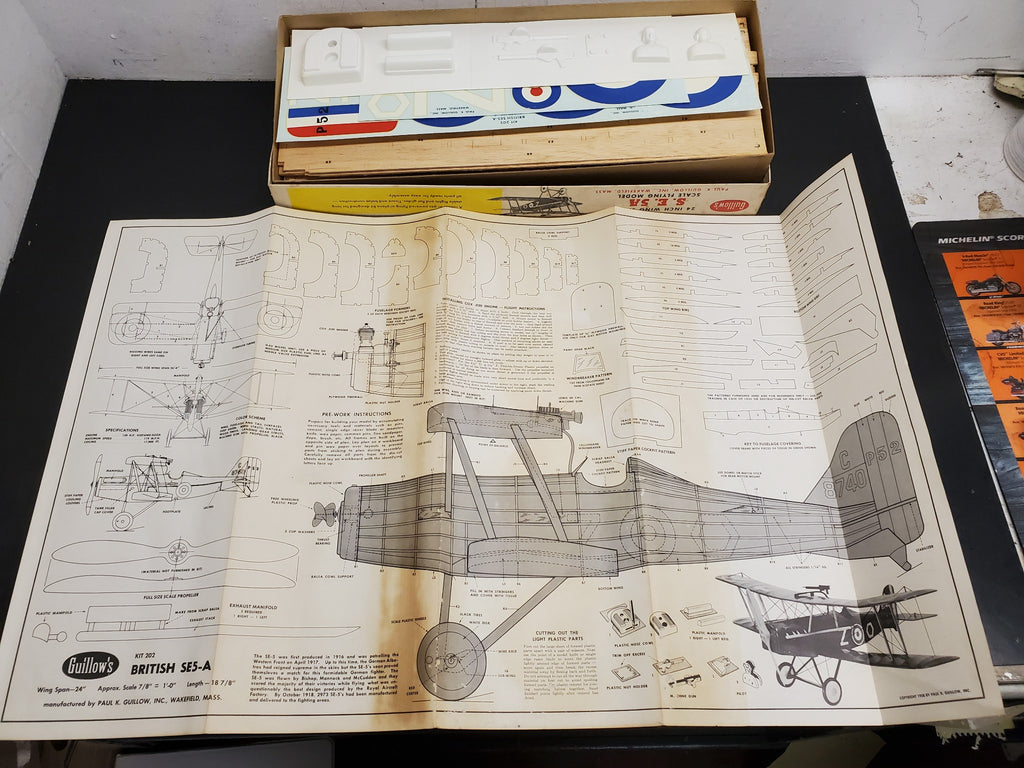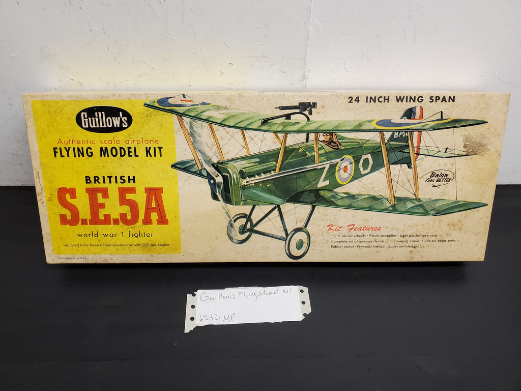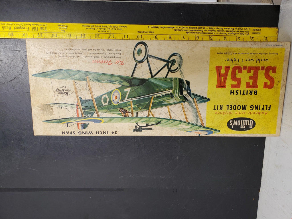 Vintage Guillow's Authentic scale airplane Flying Model Kit. Features the British S.E.5A World War 1 Fighter. 24" wing span.