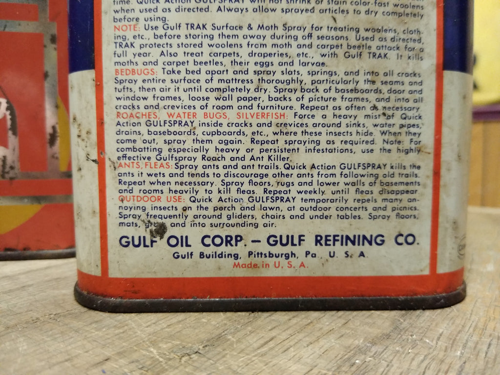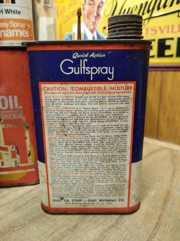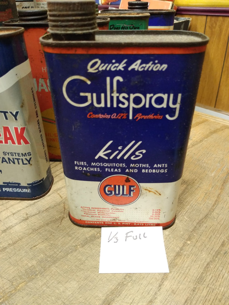 ***PLEASE LOOK AT ALL THE PICTURES AND ASK QUESTIONS BEFORE BIDDING*** This is a Vintage Gulfspray Quick Action Grade AA Household Insecticide Gulf Oil Co 1 Pint Can  ***Selling as pictured. The pictures are a substantial part of the description so please examine all the photos and contact me if you have any questions. We will be happy to save you shipping costs by picking this up at our shop. Thanks for looking.  040924- RK-06