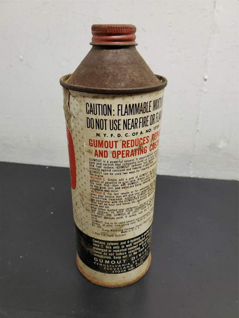 Vtg Gumout Carburetor Cleaner 16 Oz. Can Collectible Mancave Garage Oil Can Full