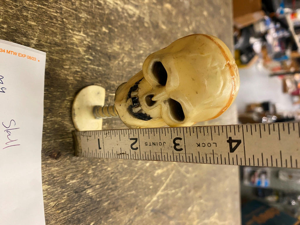 Vtg Halloween Skull Spring loaded Decor toy 1960's Skeleton Collectible Pop up! suction cup is pretty old, doesnt work anymore but still a cool old toy! maybe you had one as a kid!!