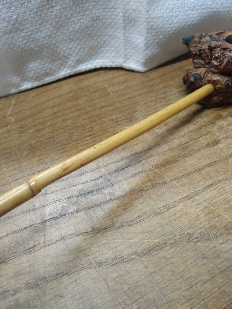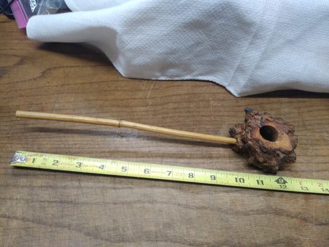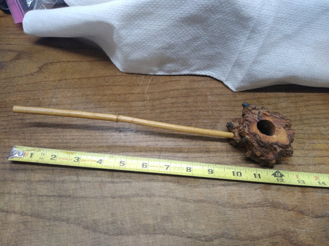 Vtg Hand Made Burl Wood Freehand Natural Bowl 10" Long Bamboo Stem Tobacco Pipe