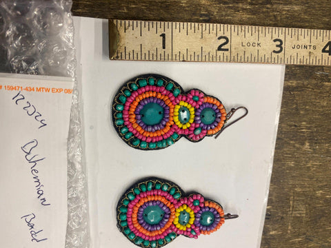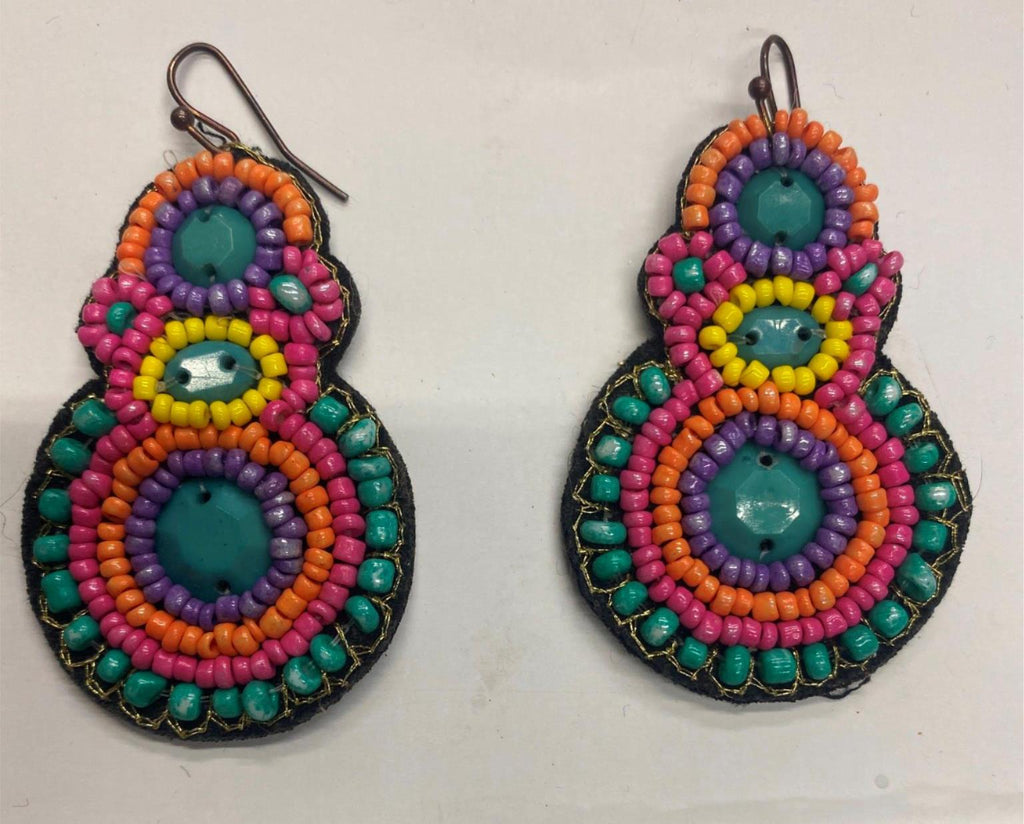 Vtg Hanging Bohemian Beaded Earrings Multi color Tropical Islands Handmade came from an old doctors estate , couldnt find a name on them have a bunch of old estate jewelry listed!