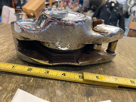 Vtg Harley Banana Brake Caliper FLH Shovelhead FX Ironhead Sportster OEM Chromed came with a basket case, sure it needs gone thru....factory harley old chrome job.
