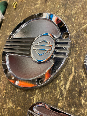 Vtg Harley Derby clutch Cover Timer inspection Set Bar Shield Softail Heritage