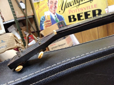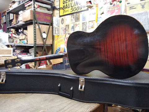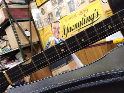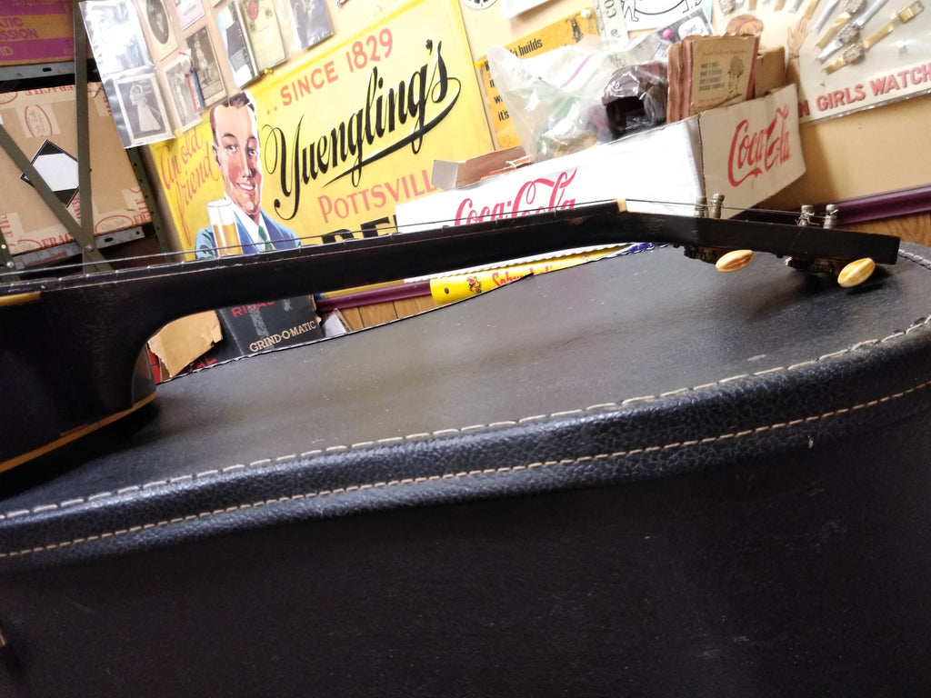 ***PLEASE LOOK AT ALL THE PICTURES AND ASK QUESTIONS BEFORE BIDDING*** This is a Vintage and Rare Harmony 1960's 4 String Acoustic Tenor Guitar Redburst, F Hole, Very Nice Tone and a Very Good Condition Case, Restore or Parts Lot.   *** The pictures are a substantial part of the description so please examine all the photos and contact me if you have any questions. We will be happy to save you shipping costs by picking this up at our shop. Thank You  093025-05-RK