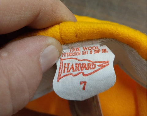 Vtg Harvard Sports Headwear Baseball Hat Cap Green Blank Fitted 7 Yellow Green... found a nos (new old stock box of these from my dad's old shop)!! no box/ believe their wool, old Hat & cap factory used to be across the street from my grandmother Leishman ave new Kensington pa, went on a tour there in approx. 1972 they gave me an old Gilligan's island style cap..... still remember it....
