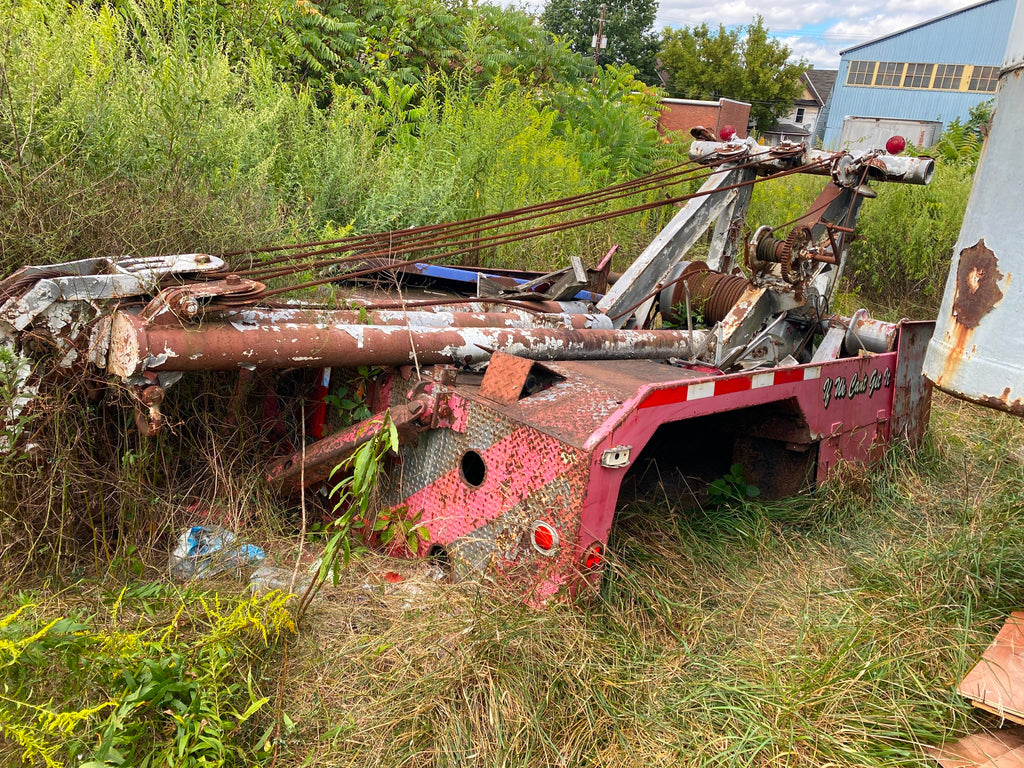 Vtg Heavy Duty Tow Truck Bed Boom Tulsa winch Co Ok Car Hauler Wrecker Back kind of inherited it. guessing some parts can be used theres a bumper laying on it also hate to scrap it..... guessing scrap is about 800 not sure of maker only name we could find was on the winch tulsa winch co. if you know name let us know.