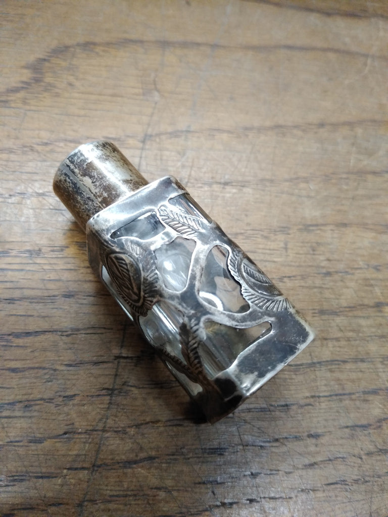 VTG Hecho Mexico Sterling Silver 925 Mini Glass Perfume Bottle Nice!