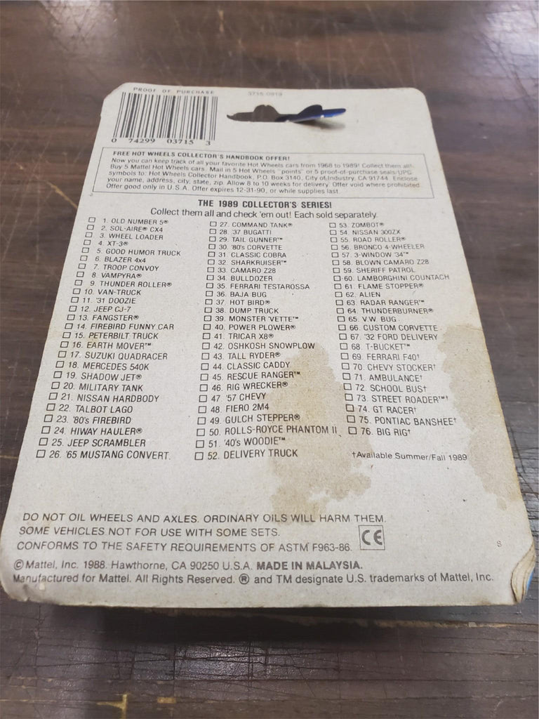 VTG hotwheels mattel brand diecast eartch mover toy car 1988 unopened in box
