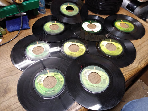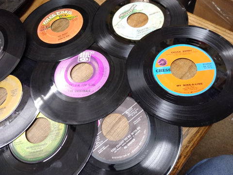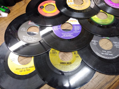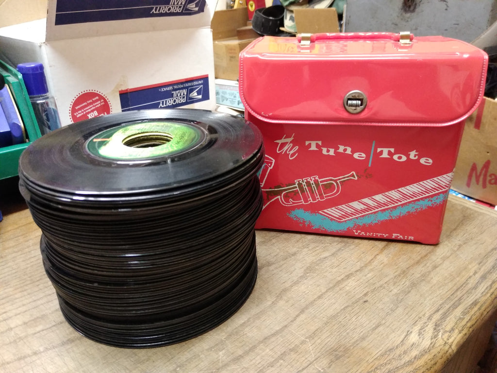 ***PLEASE LOOK AT ALL THE PICTURES AND ASK QUESTIONS BEFORE BUYING***  This is a Vintage Huge 69 Pc 45 Record Lot with The Tune Tote Case; Beetles, Jaggerz, Badfinger, Doors, and Many Many More ++!