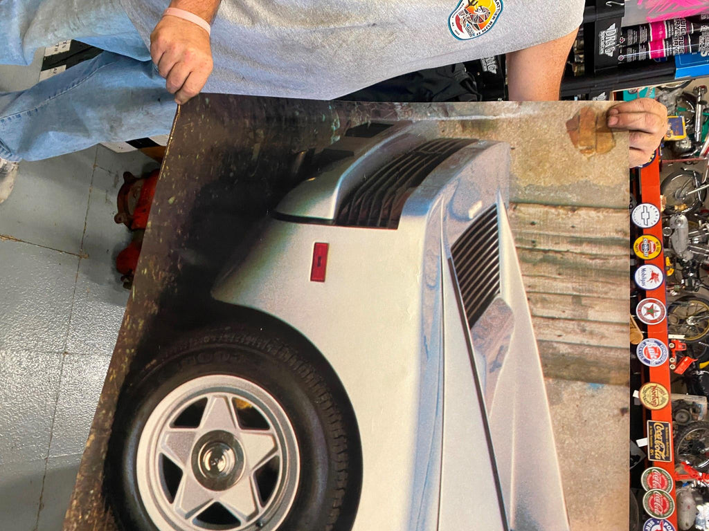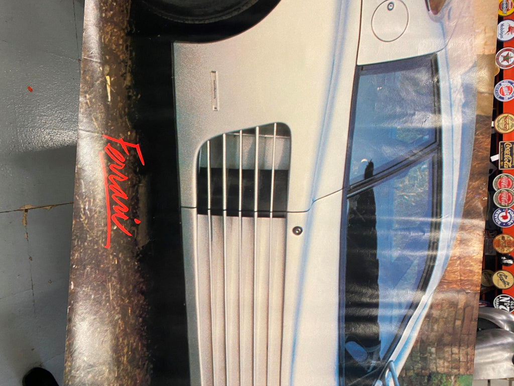 Vtg Huge Poster Ferrari Testarossa mangiamele 1986 Advertising Portal Publications!! 73x26! Would look great framed in any room, man cave garage! Nice survivor! Great Gift for the car lover!!