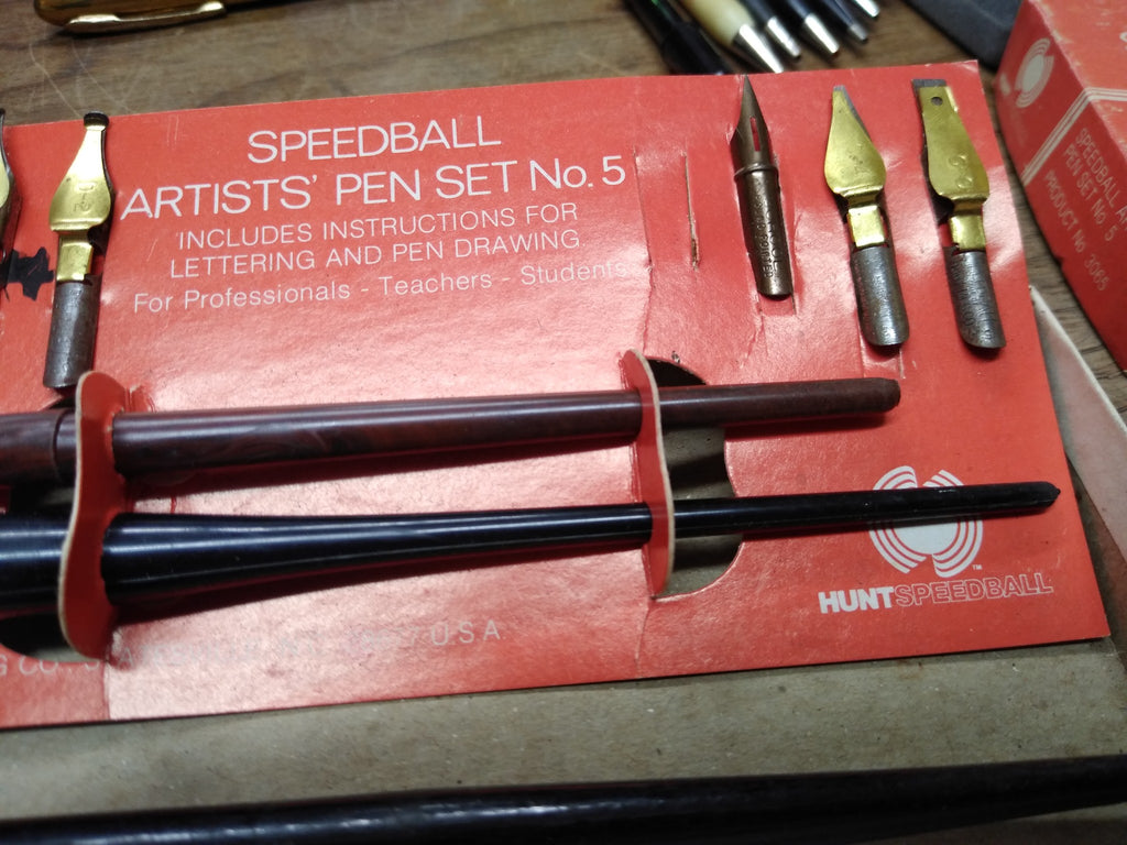 This is a Vintage HUNT Speedball Artists Dip Pen Set No 5 with Extras, in the Original Box in Nice Shape!!****** The pictures are a substantial part of the description so please examine all the photos and contact me if you have any questions. We will be happy to save you shipping costs by picking this up at our shop. Thanks for looking. 010424- RK-08