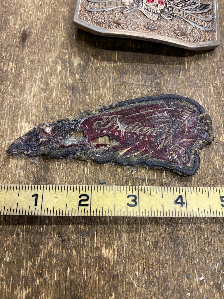 Vtg Indian Motorcycle Patch Hendee Chief 1930's Power Plus 101 Scout 4 cylinder. Got this from an old biker, said it was on his dads jacket, swore its the real McCoy.... said he semi glued it so it wouldnt fall apart....Pretty cool item for a display!!