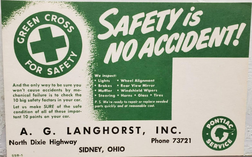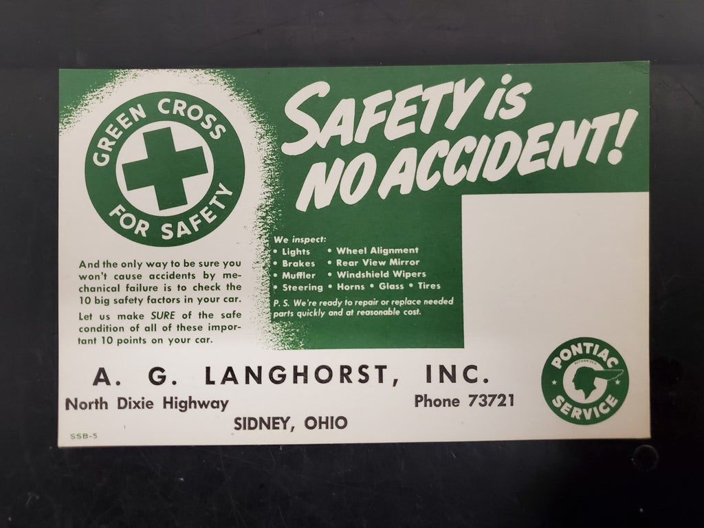 Vtg Ink Blotter Card Pontiac Service Car Advertising Safety Green Cross 4 Safety