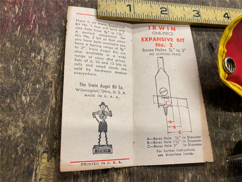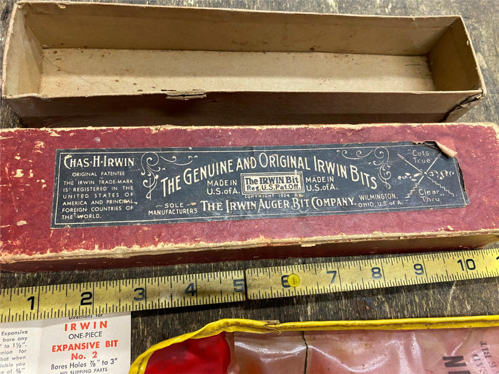 Vtg Irwin No. 2 Expansive Auger Drill Bit Orig Box Wood working tools USA Pattern maker carpenter good ole fashion usa tools!!!