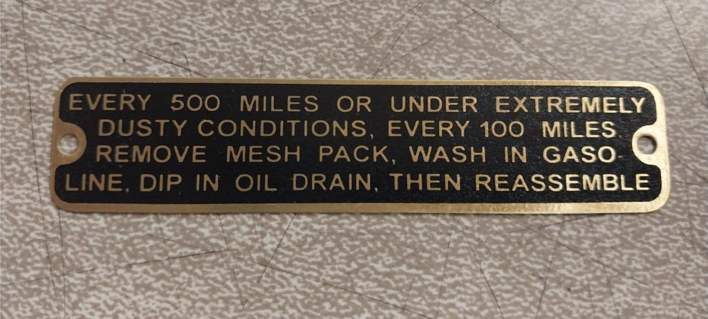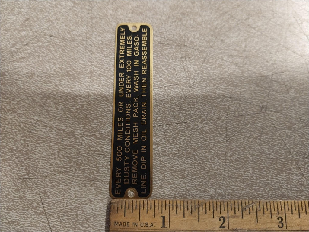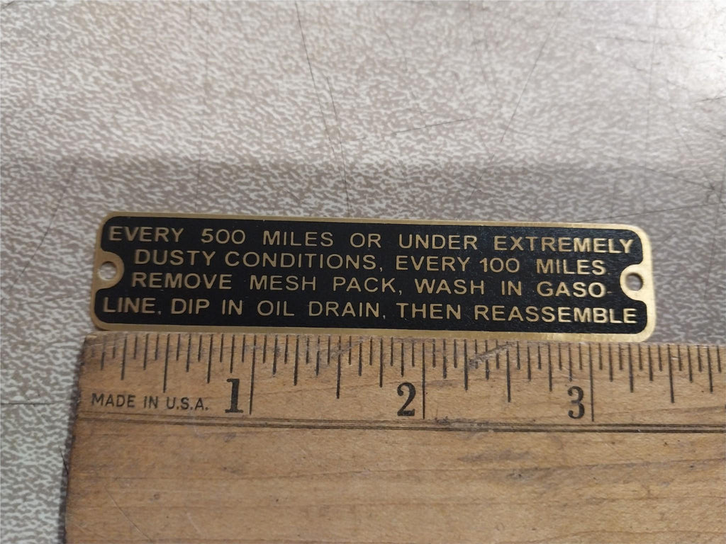 Vtg J Hook Air Cleaner Tag Brass Panhead Knucklehead Flathead UL Linker; came from a shop buyout, not sure who made them or if their nos.