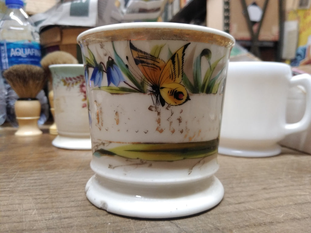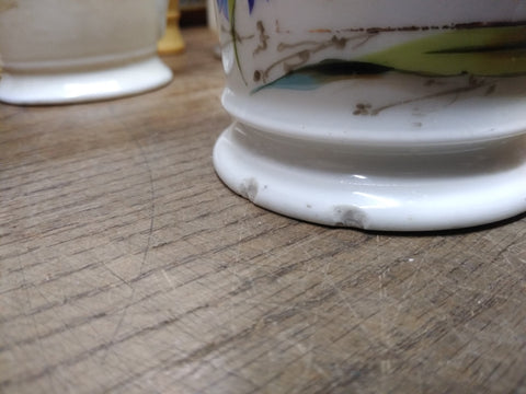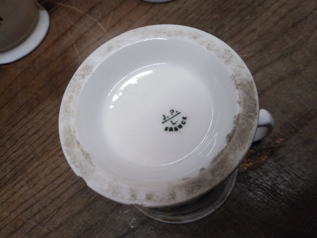 ***PLEASE LOOK AT ALL THE PICTURES AND ASK QUESTIONS BEFORE BIDDING*** This is a Vintage J.P.L Limoges France China Shaving Mug with partial Cup Soap, Hand Painted Floral 24K Gold Trim, has a couple chips on base *** The pictures are a substantial part of the description so please examine all the photos and contact me if you have any questions. We will be happy to save you shipping costs by picking this up at our shop. Thank You 120724- RK-04