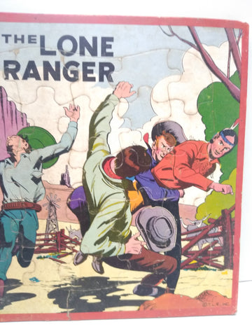 This Estate Find is a Vintage Jaymar Specialty Framed Lone Ranger Picture Puzzle. It shows wear, loose edges and needs cleaned. Please examine all the pictures and contact me if you have any questions. We will be happy to save you shipping costs by picking this up at our shop. Thanks for looking.
