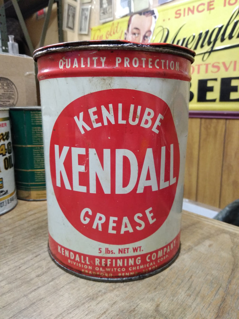 ***PLEASE LOOK AT ALL THE PICTURES AND ASK QUESTIONS BEFORE BUYING*** This is a Vintage 3/4 Full Kendall Refining Co 1950's Kenlube Grease C 999 Quality Protection 5 Pound Can! ****** The pictures are a substantial part of the description so please examine all the photos and contact me if you have any questions. We will be happy to save you shipping costs by picking this up at our shop. Thanks for looking. 113023- RK-08