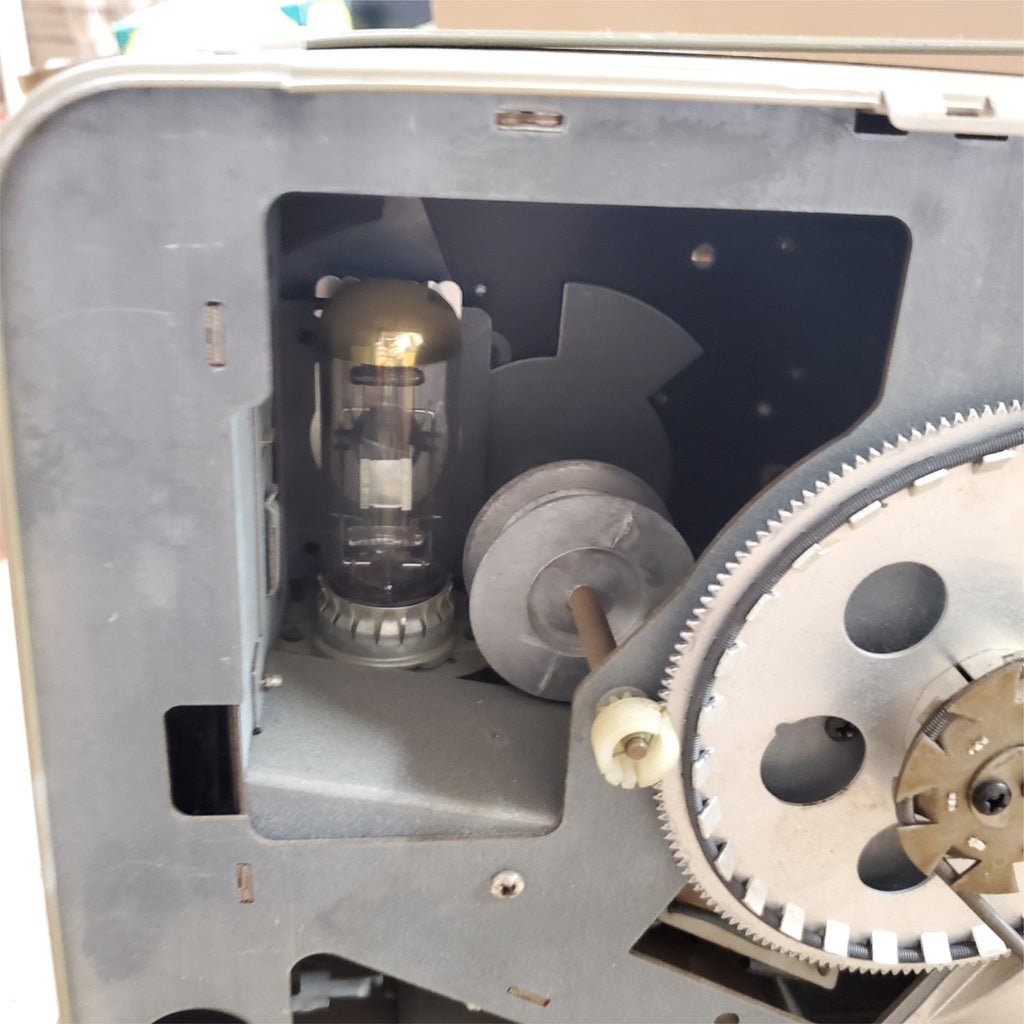 This item was tested. It dose turn on, but needs new light bulb. Can't test the rest without the light bulb, and I do not have any 8mm film.