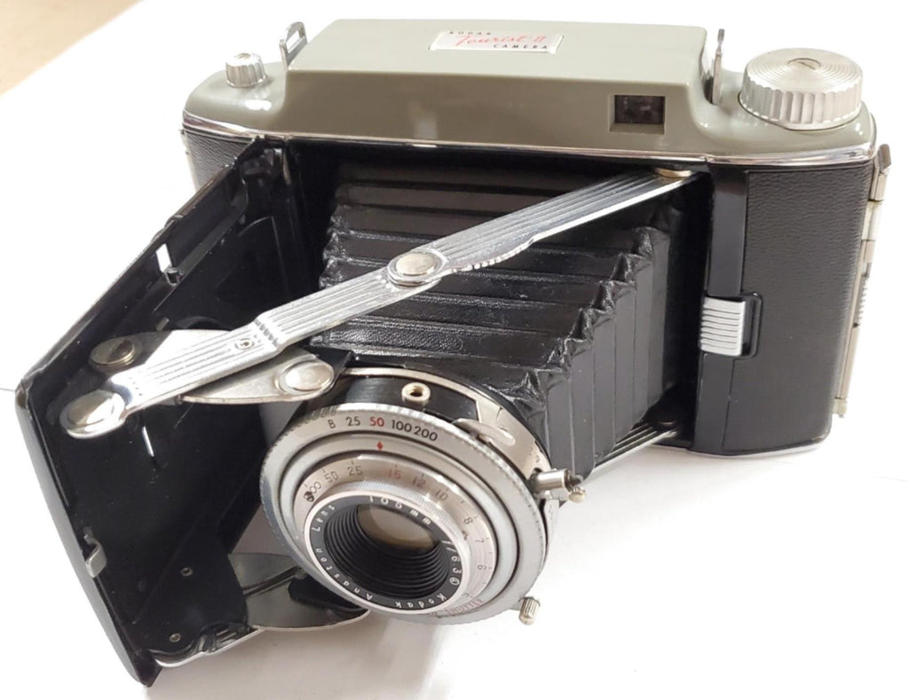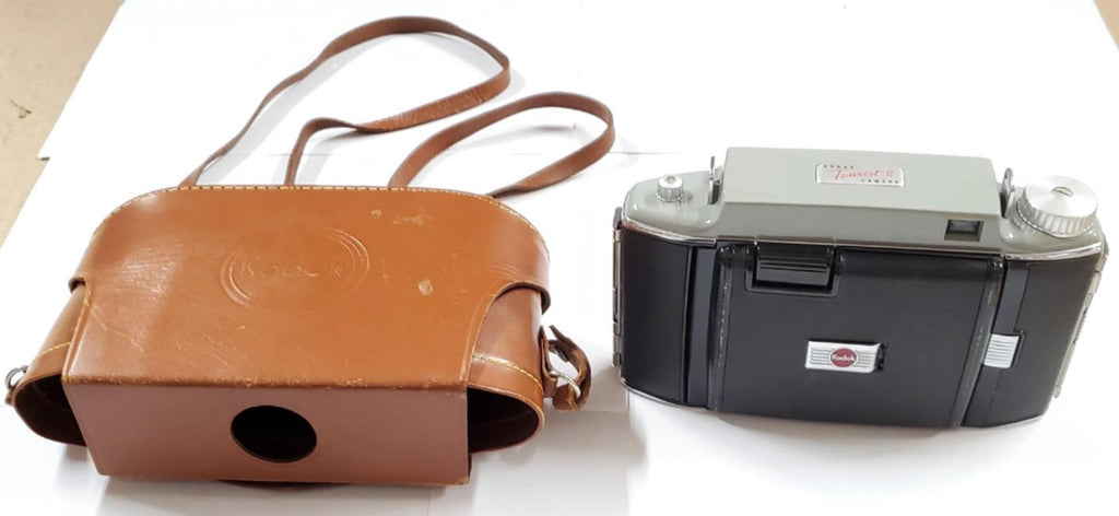 THIS IS A VERY NICE OLD KODAK TOURIST II CAMERA.  IT HAS THE ORIGINAL LEATHER CASE.  THIS WOULD LOOK GREAT HANGING UP OR ON A SHELF.  GREAT FOR THE COLLECTOR!!