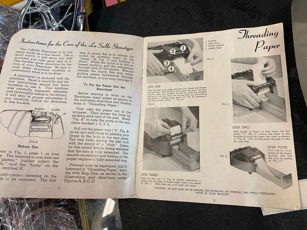 Vtg Lasalle Stenotype Machine Hard Case Instruction Manual Court manuscript 50's pretty cool piece, untested,