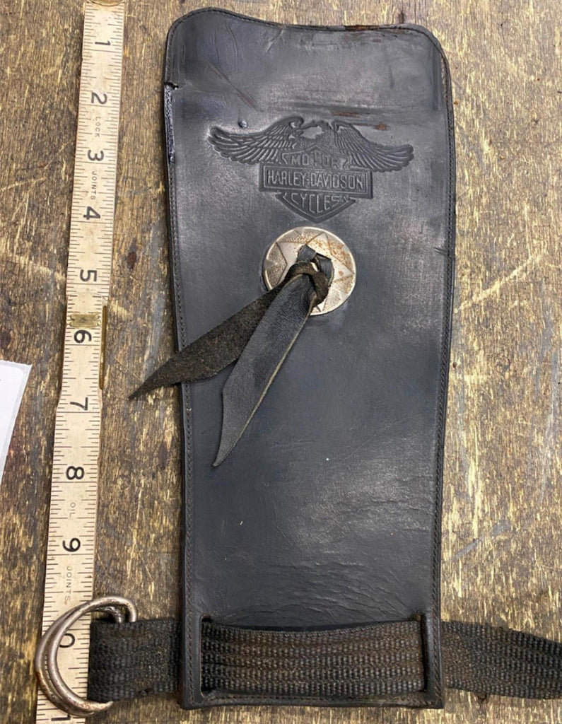 Vtg Leather Dash Cover Harley Logo Shovelhead FX FLH Superglide Wide Glide Fatbob tanks believe thats the 25th anniversary logo 1982? Early 80's usa eagle