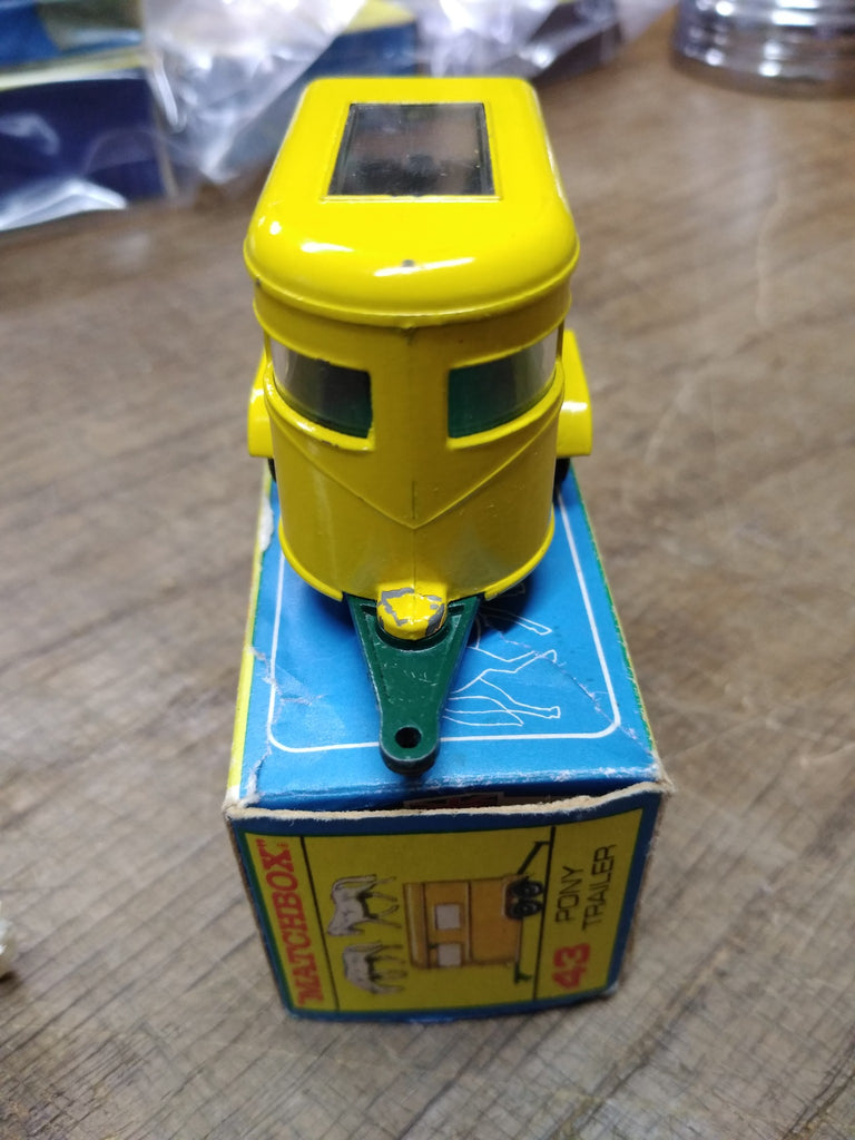 This is a Vtg. MATCHBOX Series #43 Pony Trailer with 1 Horse Made In England in The Original Box! The pictures are a substantial part of the description so please examine all the photos and contact me if you have any questions. We will be happy to save you shipping costs by picking this up at our shop. Thanks for looking.   112122-07-RK