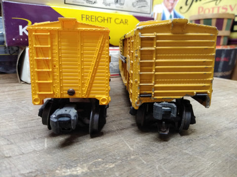 ***PLEASE LOOK AT ALL THE PICTURES AND ASK QUESTIONS BEFORE BIDDING***Lot of 2  This is a Vintage Lionel Trains O Gauge Yellow Cattle Car Lot NYC White Metal 63561 Lionel Lines 6656, Good Shape!!!   The pictures are a substantial part of the description so please examine all the photos and contact me if you have any questions. We will be happy to save you shipping costs by picking this up at our shop. Thank You    092424- RK-11