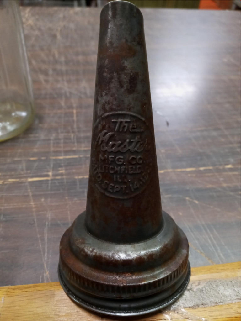 Vtg Litchfield Illinois Metal Oil Spout The Master Mfg Co Pat September 14, 1926