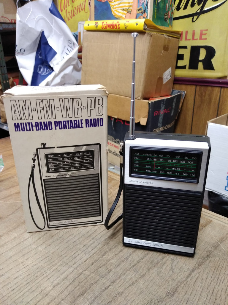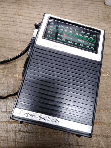 ***PLEASE LOOK AT ALL THE PICTURES AND ASK QUESTIONS BEFORE BUYING*** This is a Vintage Longines Symphonette AM FM WB PB Portable Transistor Radio Powers On w/Box! ***Turns on but tuning needle does not move*** The pictures are a substantial part of the description so please examine all the photos and contact me if you have any questions. We will be happy to save you shipping costs by picking this up at our shop. Thank You 010325- RK-01