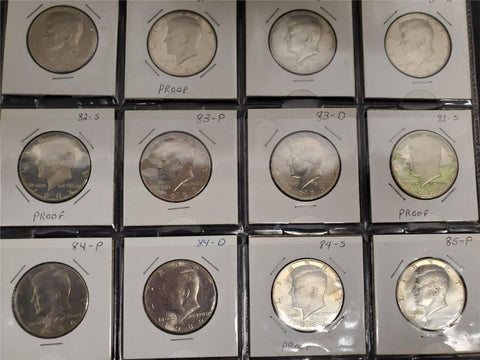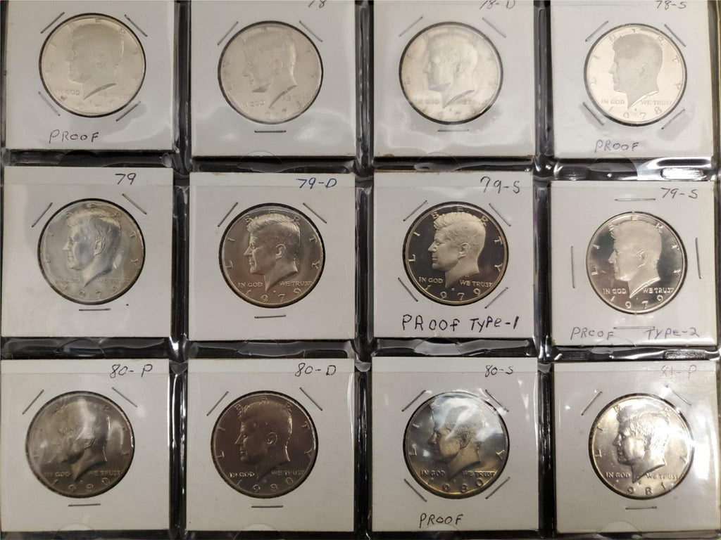 Vtg Lot 81 JFK Half Dollar Coins Including Proofs 1971-1998 Starter Collection.