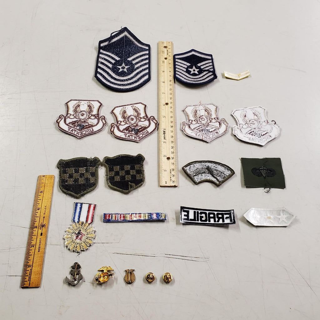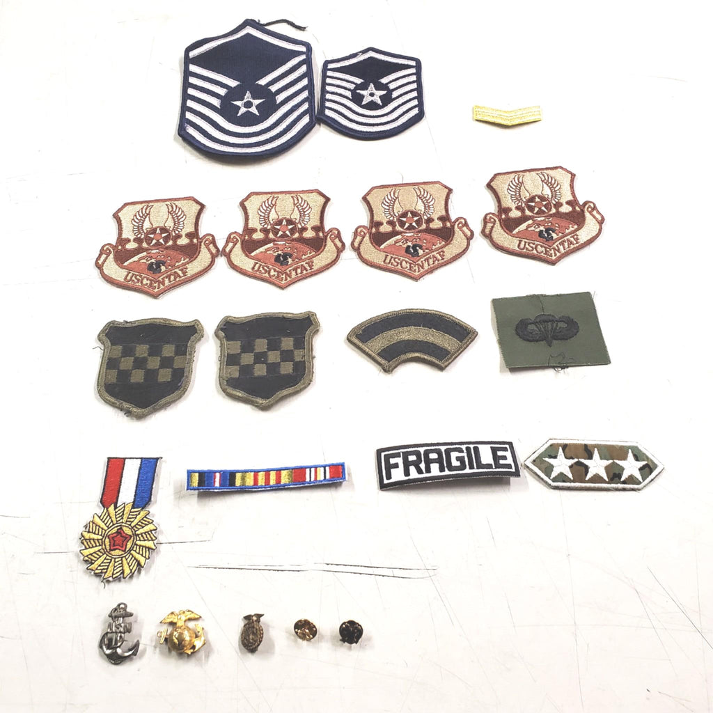 VTG LOT Mixed Military 15 Patches & 5 Pins Collectibles Airforce Marines Navy.