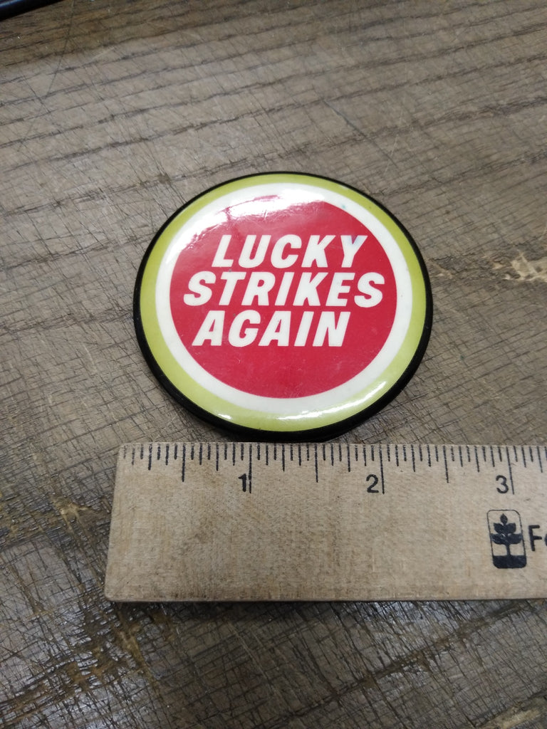 ***PLEASE LOOK AT ALL THE PICTURES AND ASK QUESTIONS BEFORE BUYING*** This is a Vintage Lucky Strikes Again Cigarette Pin 2.5 Inch in Good Shape!!! ***Selling as pictured. The pictures are a substantial part of the description so please examine all the photos and contact me if you have any questions. We will be happy to save you shipping costs by picking this up at our shop. Thanks for looking. 032124- RK-04