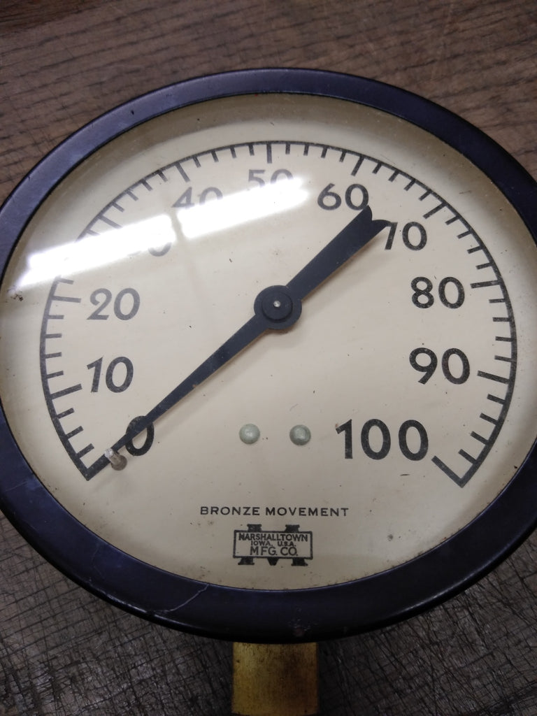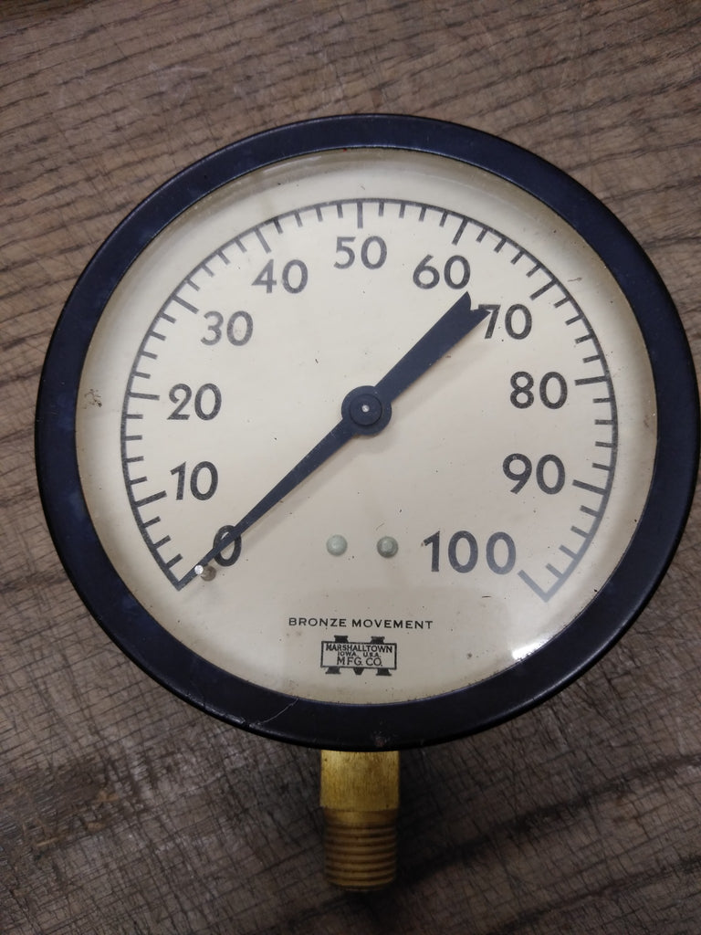 This is a Vintage Marshalltown Bronze Movement 0-100 PSI Pressure Gauge 4.75 Inch Diameter Steampunk, Untested !!******Selling as pictured. The pictures are a substantial part of the description so please examine all the photos and contact me if you have any questions. We will be happy to save you shipping costs by picking this up at our shop. Thanks for looking. 021524- RK-06