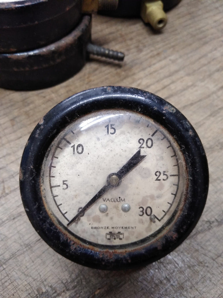 This is a Vintage Marshalltown Bronze Movement Vacuum 0-30 PSI Pressure Gauge 2.5" ****** The pictures are a substantial part of the description so please examine all the photos and contact me if you have any questions. We will be happy to save you shipping costs by picking this up at our shop. Thanks for looking. 011624- RK-15
