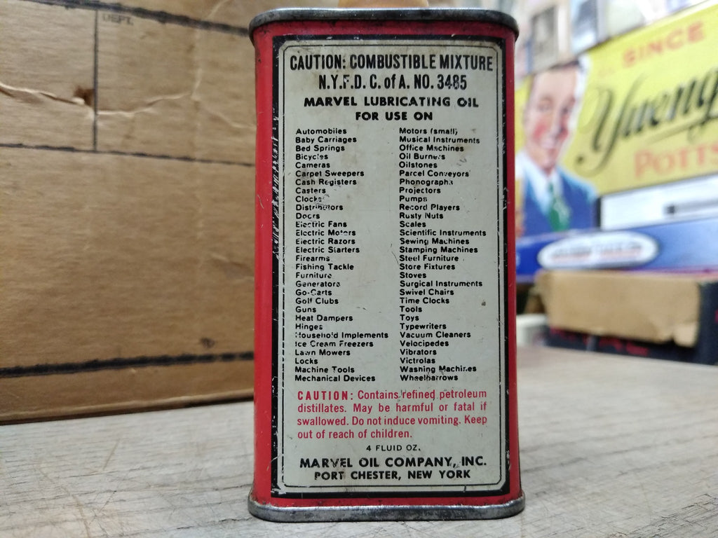 ***PLEASE LOOK AT ALL THE PICTURES AND ASK QUESTIONS BEFORE BIDDING*** This is a Vintage Marvel Lubricating Oil Super Blend 4 Ounce Can with Red Cap, Good Condition! *** The pictures are a substantial part of the description so please examine all the photos and contact me if you have any questions. We will be happy to save you shipping costs by picking this up at our shop. Thank You 032825- RK-07