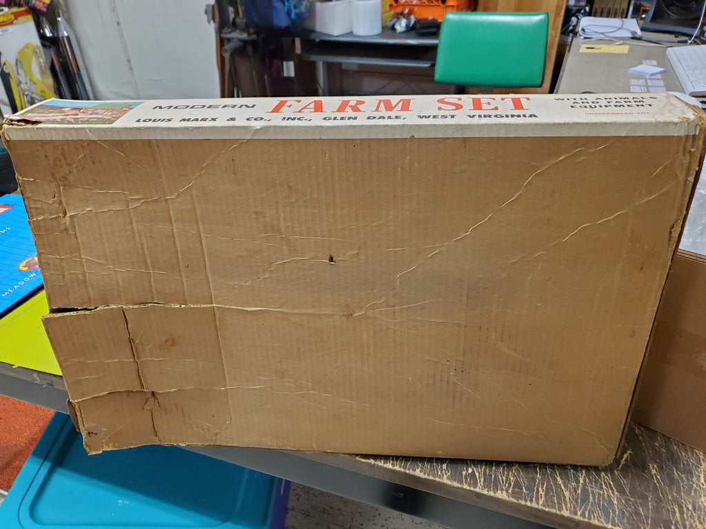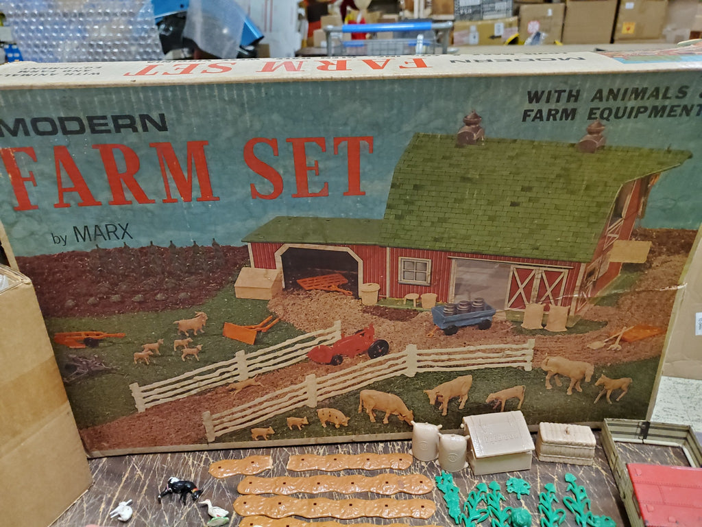Vtg Marx Modern Tin Farm Set Barn Animals Tractor Farm Equipment #3931 Collectible