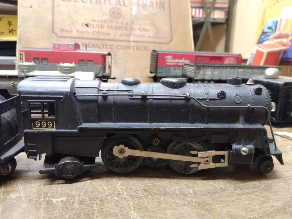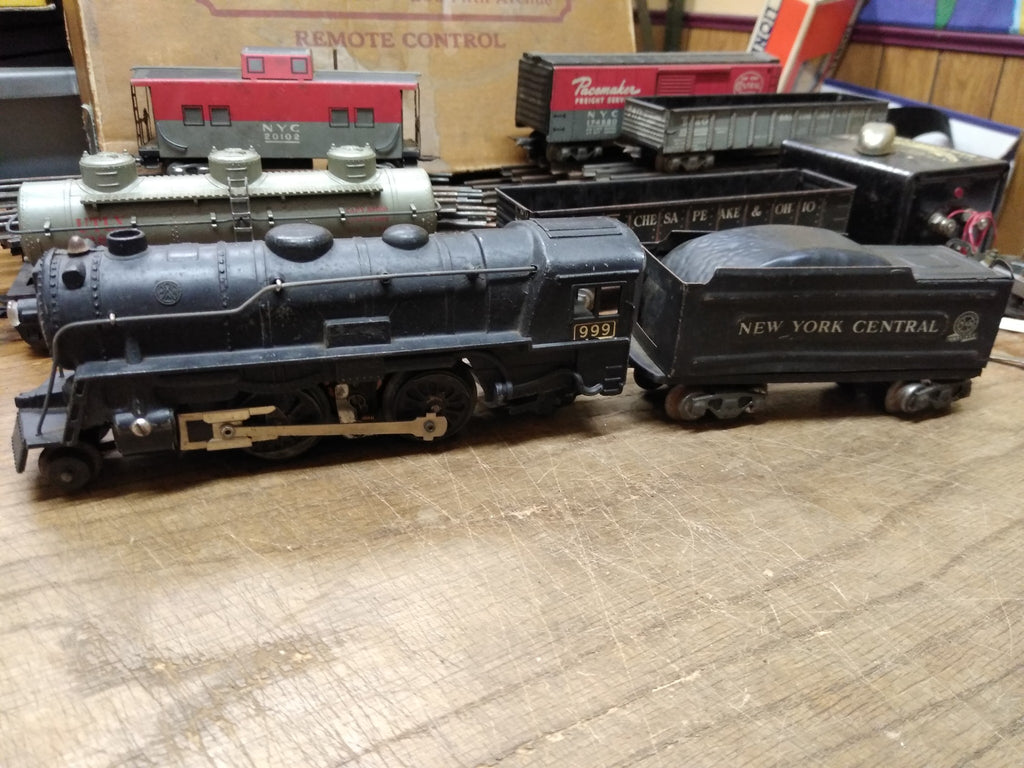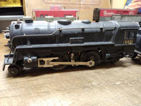 ***PLEASE LOOK AT ALL THE PICTURES AND ASK QUESTIONS BEFORE BUYING*** This is a Vintage Marx O Gauge Stream Line Train Set NYC 999 Locomotive & Tender 5 Cars, 16 Pc Track, Transformer and Original Box! ***Locomotive Powers Up and Light Works but Does Not Run.*** The pictures are a substantial part of the description so please examine all the photos and contact me if you have any questions. We will be happy to save you shipping costs by picking this up at our shop. Thanks for looking. 111423- RK-11