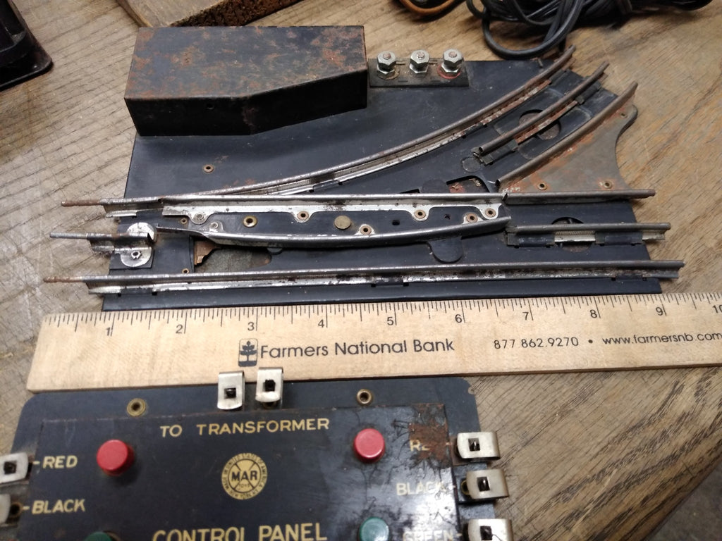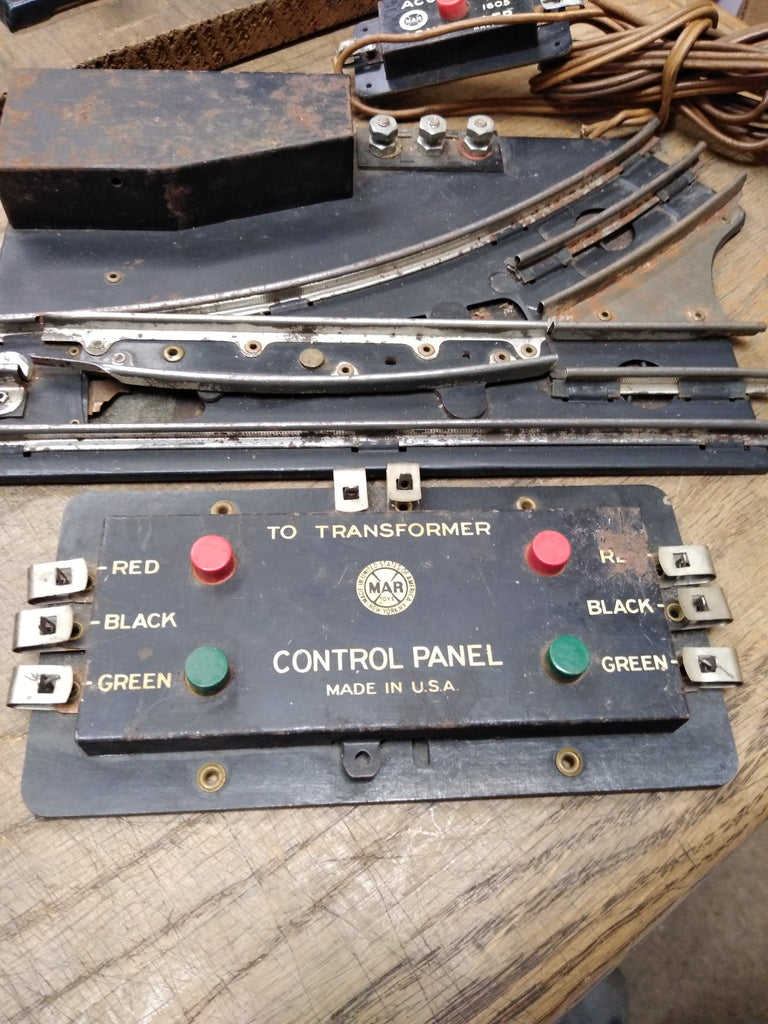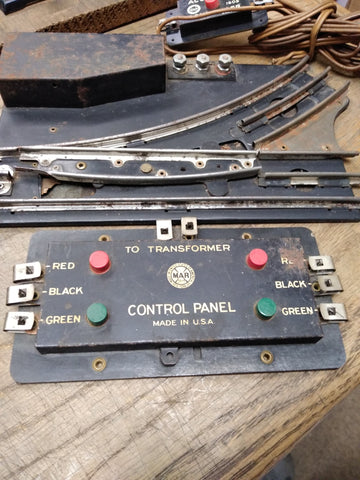 This is a Vintage Marx O Gauge Toy Train Accessory Lot Switch Track, Control Panel Untested.*** Selling as pictured as is. The pictures are a substantial part of the description so please examine all the photos and contact me if you have any questions. We will be happy to save you shipping costs by picking this up at our shop in Butler, Pa. Thanks for looking. 052124- RK-12