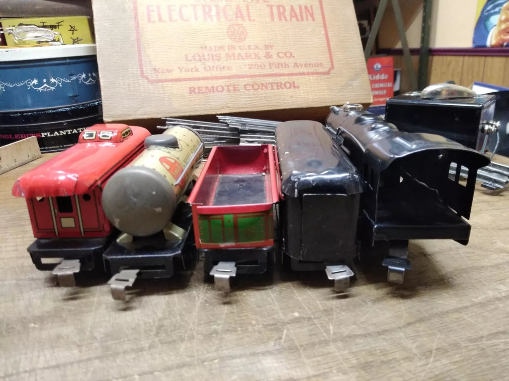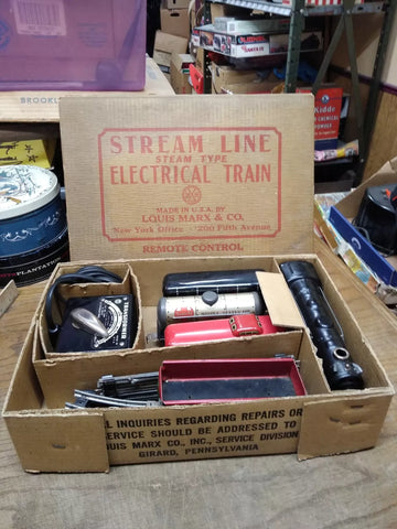 This is a Vintage Marx O Gauge Stream Line Steam Type Train Set, Steam Locomotive, Tender, 3 Cars , With Box, Light Works and Runs Good!*** Please Check Condition Description for more information.