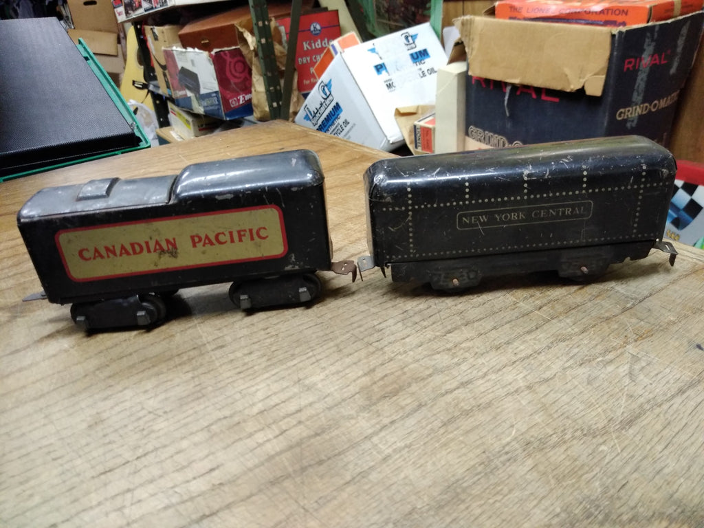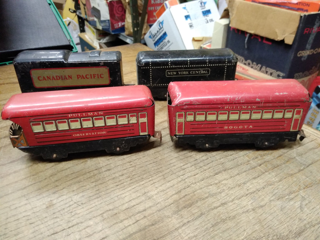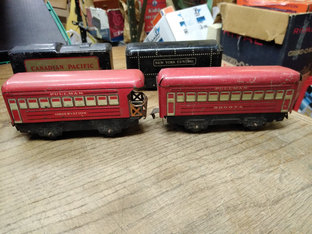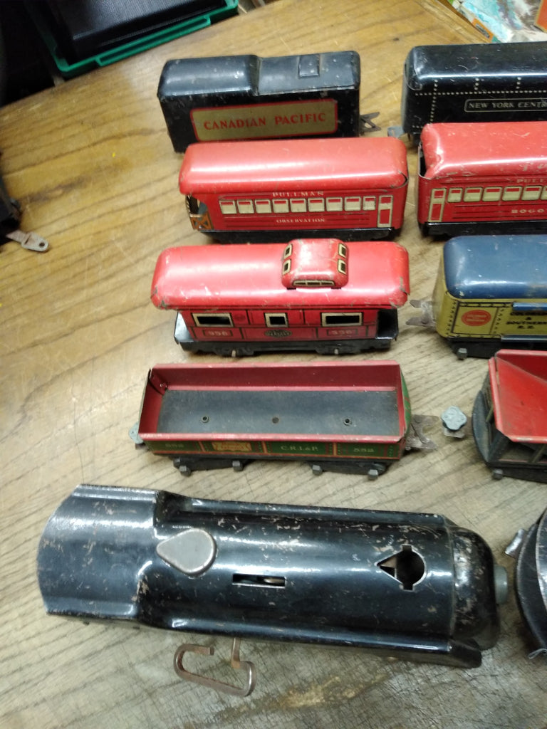 ***PLEASE LOOK AT ALL THE PICTURES AND ASK QUESTIONS BEFORE BIDDING*** This is a Vintage MARX O Gauge Wind Up Train 10 Pc Parts Repair Lot, Both Engines wind up and run Now and Then, but, need adjustments and a wheel, some are in Good Shape! The pictures are a substantial part of the description so please examine all the photos and contact me if you have any questions. We will be happy to save you shipping costs by picking this up at our shop. Thank You 091724- RK-03