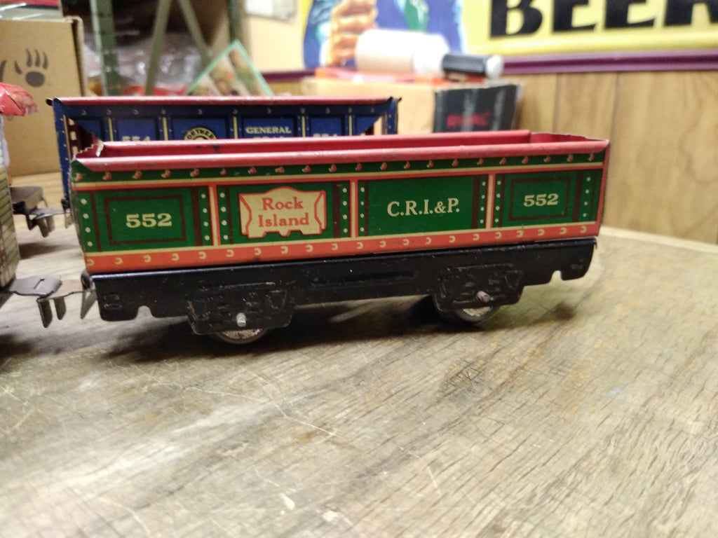 Vtg MARX Tin Locomotive Train Set Wind Up Motor 5 Cars w/Key Working Motor Bell!